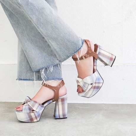 結びデザインのリボンとボリュームソールが目を引く、