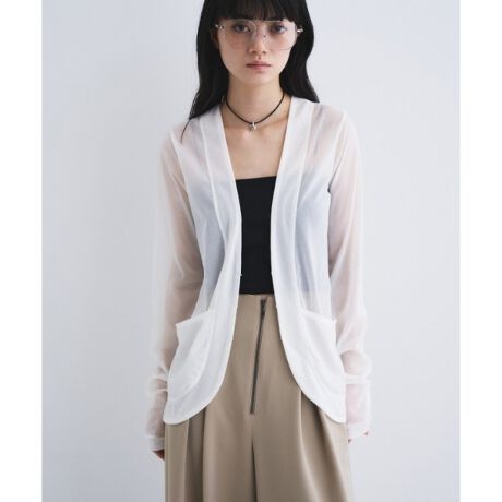 素肌に溶け込む透明感。シャープに纏う、大人のシアーカーディガン。