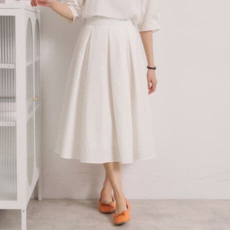 春らしい清涼感あるサッカー素材を使用したタックスカート。