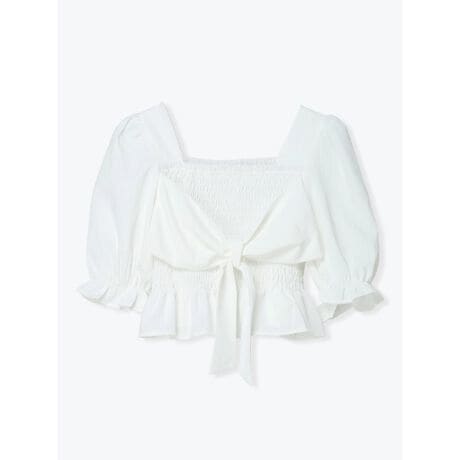 [型番:26560781816]くしゅっとしたシャーリングが表情感を演出するブラウス。フロントにリボンを施しており、ガーリーなムードをプラスします。ふんわりとしたボリューム感のあるスリーブがポイント。デニムやミニスカートなど、様々なボトムスと相性の良いアイテムです。