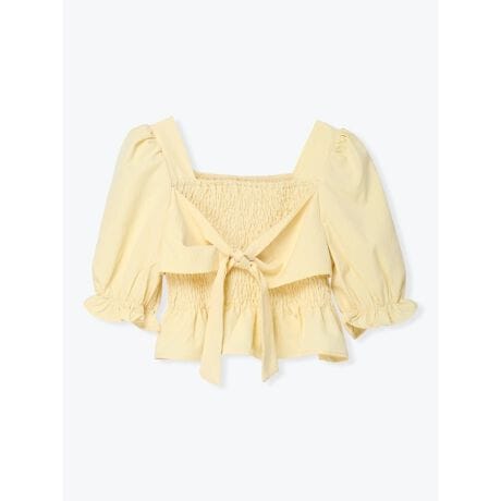 [型番:26560781816]くしゅっとしたシャーリングが表情感を演出するブラウス。フロントにリボンを施しており、ガーリーなムードをプラスします。ふんわりとしたボリューム感のあるスリーブがポイント。デニムやミニスカートなど、様々なボトムスと相性の良いアイテムです。
