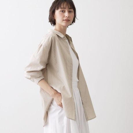 ベーシックなシャツ型ながら、1枚で着映えするアイテムです。