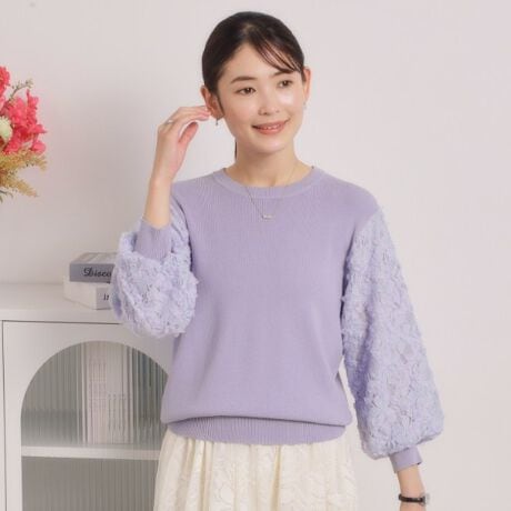 立体チュールレース袖ニット