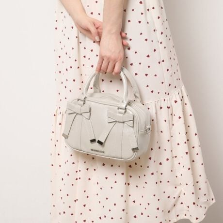 フロントにあしらわれたリボンが可愛らしいアクセントになった2WAY仕様のミニボストンバッグ。