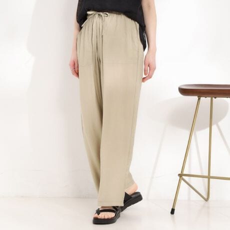 ウエストはゴム仕様のイージータイプで、リラックス感がありながらもすっきりとした印象に仕上がっています。