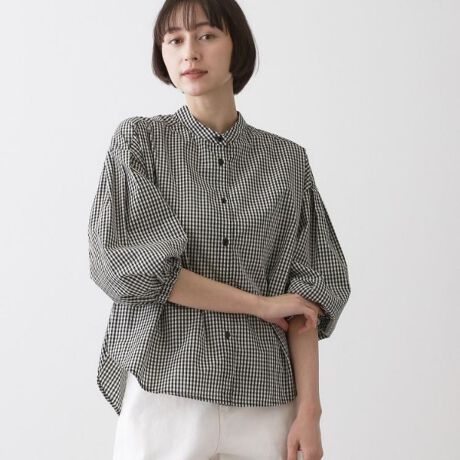 程よいハリ感のあるブロード素材を使用した袖ボリュームブラウス。
