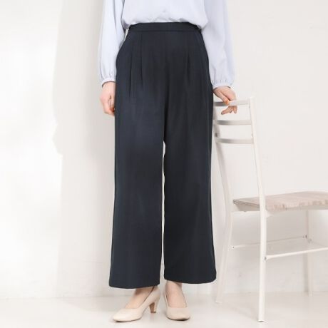 気になるヒップや太もも周りをしっかりカバーできるシルエットで、動きやすい2タック仕様のワイドパンツ。