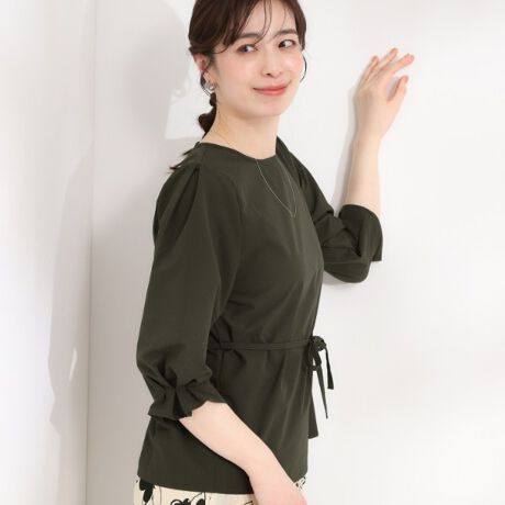 袖口のタックデザインで腕の部分はふっくらと仕上げ、さりげなく二の腕をカバー。