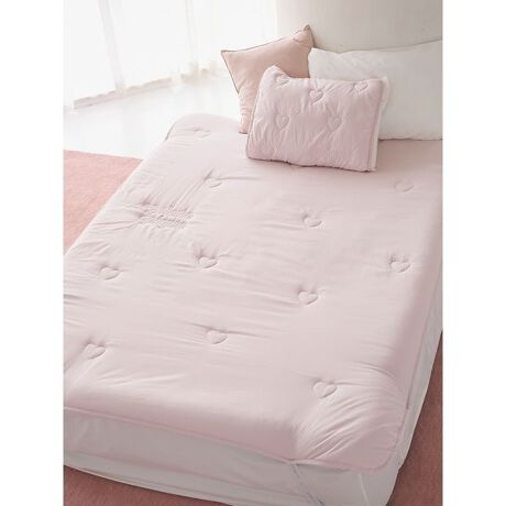 「胸がきゅんとする」をコンセプトにデザインした、ハートモチーフのガーリーな寝具シリーズです。ラブリーなハートとブランドロゴの柄を組み合わせた、柔らかなキルト素材のセミダブルサイズ敷きパッド。さらっとした肌触りでこれからの季節に重宝します。色はオフホワイトとピンクの2色をご用意。同シリーズのピローパッドとのコーディネートもおすすめです。