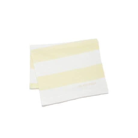 なめらかな肌触りの’スムーズィーライト’素材を使用した、定番2色ボーダーの雑貨シリーズです。コントラストの効いた、夏らしいフレッシュな配色が魅力のブランケット。飽きのこない定番柄で、夏のエアコン対策としての肩掛けや膝掛け、リビングでのお昼寝など幅広いシーンでご使用いただけます。ワンポイントでロゴ刺繍も添えました。色はレモンを思わせるイエロー、ストロベリーをイメージしたピンク、ブルーベリーのようなブルーの3色展開。同シリーズのルームウェアや雑貨と合わせたり、ギフトにもおすすめです。
