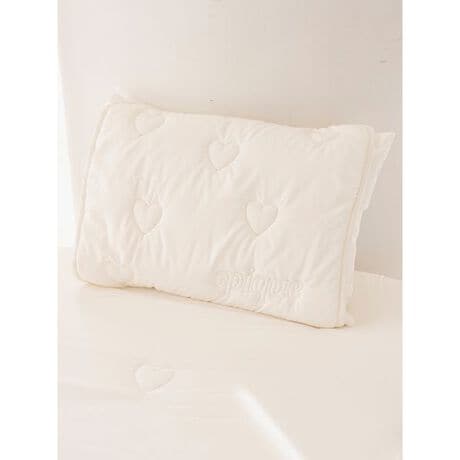 「胸がきゅんとする」をコンセプトにデザインした、ハートモチーフのガーリーな寝具シリーズです。ラブリーなハートとブランドロゴの柄を組み合わせた、柔らかなキルト素材のピローパッド。さらっとした肌触りはこれからの季節にぴったり。ゴムバンドでスムーズに掛け外しできるのが便利です。色はオフホワイトとピンクの2色をご用意。同シリーズの敷きパッドとのコーディネートもおすすめです。