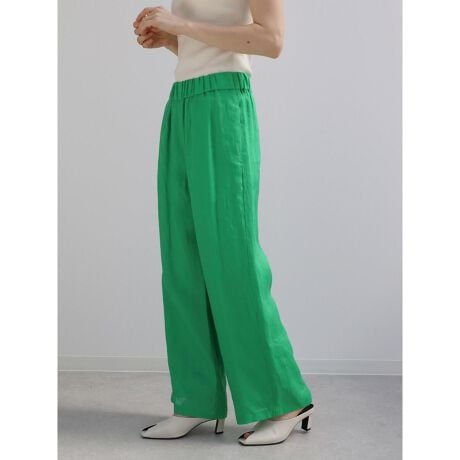 無駄を削ぎ落したベーシックなデザインが、素材の上質さを引き立たせるワイドパンツ。ウエストは総ゴム仕様のリラクシーな穿き心地。ナチュラルな風合いと軽やかな落ち感がシーズンムードを高め、リラックス感のある大人のスタイルを叶えます。