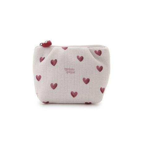 「胸がきゅんとする」をコンセプトにデザインした、春を感じる針抜きカットソーを使用したハート柄ティッシュポーチです。じんわりと滲んだような手描き風のハート柄がポイント。柔らかな素材感で、裏面にはポケットティッシュ入れが付いています。リップとファンデーションなど、最低限のコスメがコンパクトにまとまるサイズ感。ファスナーの引き手には、ぷっくりとしたロゴ入りのハート型チャームを添えました。色はオフホワイトとピンク、ブルーの3色展開。同シリーズの雑貨やウェアと組み合わせたり、ギフトにもおすすめです。