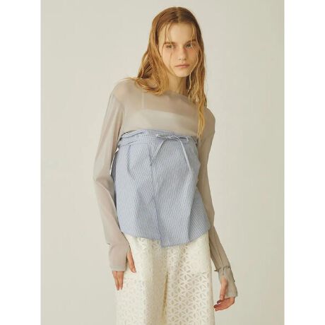 1枚での着用はもちろん、キャミソールやジレとのレイヤードも楽しめるワードローブに欠かせない万能なシアートップスです。