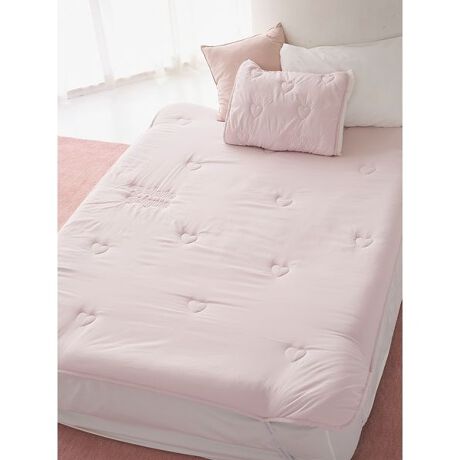 「胸がきゅんとする」をコンセプトにデザインした、ハートモチーフのガーリーな寝具シリーズです。ラブリーなハートとブランドロゴの柄を組み合わせた、柔らかなキルト素材のダブルサイズ敷きパッド。さらっとした肌触りでこれからの季節に重宝します。色はオフホワイトとピンクの2色をご用意。同シリーズのピローパッドとのコーディネートもおすすめです。