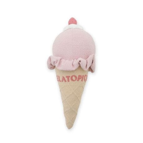 猛暑の夏をちょっぴり涼しくHAPPYに彩る、冷たいソルベをモチーフにした小物シリーズです。リビングやベッド周りに置いてあるだけで気分が上がりそうな、ソルベ型のクッション。天辺にちょこんと乗ったストロベリーとクリームのトッピングや、くしゅっとしたフリルで仕上げたソルベの質感、コーンの模様やロゴジャガードなど、細かい作り込みはgelato piqueならではのこだわりです。同シリーズのルームウェアや雑貨と合わせてお楽しみください。