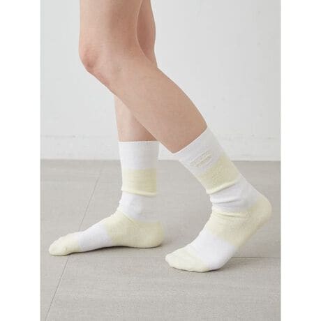 なめらかな肌触りの’スムーズィーライト’素材を使用した、定番2色ボーダーの雑貨シリーズです。コントラストの効いた、夏らしいフレッシュな配色が魅力のソックス。飽きのこない定番柄で、ショートパンツやワンピースなどに幅広く合わせられ、足元の冷え対策に重宝します。ワンポイントでロゴ刺繍も添えました。色はレモンを思わせるイエロー、ストロベリーをイメージしたピンク、ブルーベリーのようなブルーの3色展開。同シリーズのルームウェアや雑貨と合わせたり、ギフトにもおすすめです。