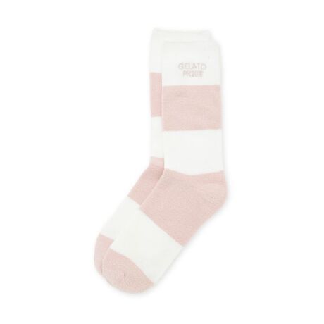 なめらかな肌触りの’スムーズィーライト’素材を使用した、定番2色ボーダーの雑貨シリーズです。コントラストの効いた、夏らしいフレッシュな配色が魅力のソックス。飽きのこない定番柄で、ショートパンツやワンピースなどに幅広く合わせられ、足元の冷え対策に重宝します。ワンポイントでロゴ刺繍も添えました。色はレモンを思わせるイエロー、ストロベリーをイメージしたピンク、ブルーベリーのようなブルーの3色展開。同シリーズのルームウェアや雑貨と合わせたり、ギフトにもおすすめです。