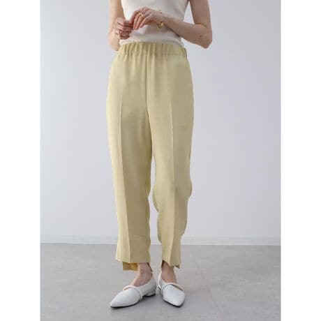 スリットの裾を前後差のあるカットで仕上げ、脚が綺麗に見えるようにこだわったAgaロングセラーのテーパードパンツ。美しいシルエットながらゴム仕様のウエストでリラックスした履き心地を実現。季節感じる鮮やかなブルーとイエローを含んだカラーバリエーションも注目。デイリー使いはもちろん、シーズンレスでオフィスカジュアルにも活躍してくれます。