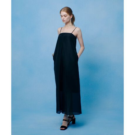程よい透け感と張りのある素材を使用しています。同素材のJKとセットアップでもおすすめです。実績のあるオールインワンを素材変更しています。ワイドな裾巾で大人っぽく着こなして頂けます。後ろはゴム仕様になっており、着用感も楽なお作りです。