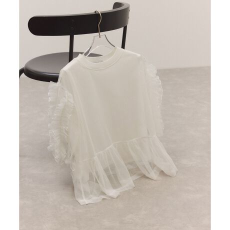 カットソーにチュールを重ねた、1枚で簡単に決まるデザインTシャツ。