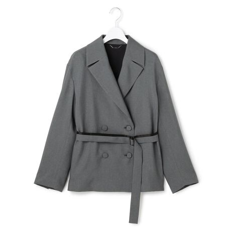 ■デザイントレンチ型のショートコートです。シーズンレスで軽く羽織れるショートコートを目指したので、身幅や袖幅はあえてゆとりを感じられるサイズ感にしています。ロング丈のアイテムとのレイヤードもしやすいので、ロングジレや、ワンピースとの合わせもおすすめです。ボタンは表地と同素材のくるみ釦で仕上げ、クリーンな印象にまとめています。見返し端の配色パイピングや背中の観音仕立て、チェンジボタン仕様でさりげなくきかせたメタルパーツなど、内側の仕様にもこだわりました。また、ベルトはサテン地とのコンビでアクセントをプラス。脇にはシリーズ共通のシームデザインを取り入れることで、セットで着た際により統一感を感じられるようにデザインしています。