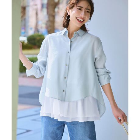 バックスタイルに施された大胆なドレープが目を引く、洗練されたデザインシャツです。前身頃はすっきりと見せつつ、後ろ身頃にはたっぷりと動きを持たせることで、360度どこから見ても美しいシルエットを叶えました。襟を少し後ろに抜いて着ていただくと、よりニュアンスのある今年らしい雰囲気が楽しめます。 ヒップラインを自然にカバーする前後差のある丈感で、細身のパンツと合わせたメリハリのあるスタイリングはもちろん、ワイドパンツと合わせたリラックス感のあるコーディネートもおすすめ。前ボタンを開ければ羽織りとしても活躍し、オンオフ問わず幅広いシーンでお使いいただけます。 カラーは、フェミニンで華やかなピンク(#012)、肌なじみが良く上品なベージュ(#033)、シックで落ち着いた印象のダークブラウン(#035)、清涼感あふれるサックスブルー(#073)、知的で引き締まるネイビー(#075)の5色展開です。