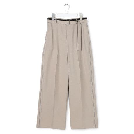 ■デザイン洗練された印象を与えるワイドストレートシルエットのパンツです。付属のサッシュベルトは、片面の上端に切り替え別布サテンを使用しています。脇にはブランドらしい縫い代を表に出したステッチディテールを施し、シンプルながらもエッジの効いたアクセントをプラスしました。同シリーズのアイテムとのセットアップ着用もおすすめです。