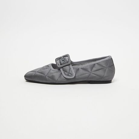 アッパーのキルティングデザインが印象的なスクエアトゥのメリージェーンフラット。