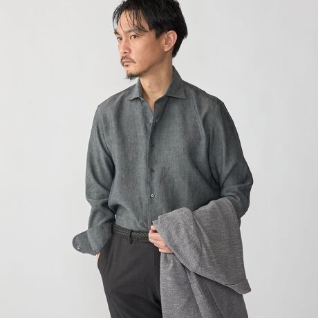 極細番手の80番単糸で織り上げ、糸番手から加工までこだわりぬいたオリジナルのリネン素材です