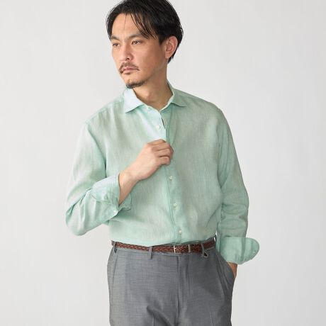 極細番手の80番単糸で織り上げ、糸番手から加工までこだわりぬいたオリジナルのリネン素材です