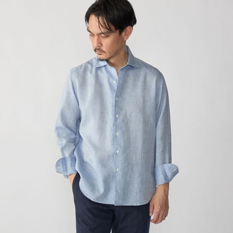 極細番手の80番単糸で織り上げ、糸番手から加工までこだわりぬいたオリジナルのリネン素材です
