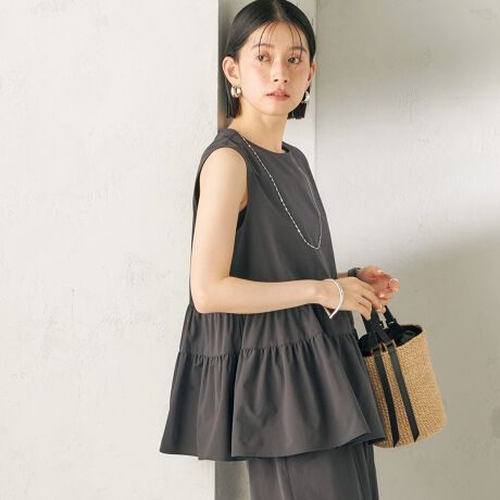 ランダムティアードが目を引くノースリーブブラウス。