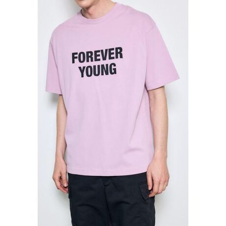 ■FOREVER YOUNG半袖Tシャツ■ポイント引きそろえ天竺を使用したロゴプリント半袖Tシャツ。■ディテール程よいボリューム感としっかりした厚みで、カジュアルながら存在感のある一枚。BLK・WHT・GRY・L/PNKの豊富なカラーバリエーションで、幅広いスタイリングに対応します。3サイズでジャストなサイズで着ていただけます。■スタイリングデニムやチノパンツと合わせた王道カジュアルはもちろん、シャツやジャケットのインナーとしてプリントを覗かせるレイヤードスタイルもおすすめ。スニーカーでラフにまとめるのはもちろん、ショーツと合わせて夏の主役アイテムとしても活躍します。■生地2本の糸を撚らずに並べて一緒に編み立てた引きそろえの天竺です。糸を撚り合わせず(ねじらず)に編むため、糸の中に空気が含まれやすく、ボリューム感のある仕上がりになります。32番手という「中番手」の糸を2本使うことで、一般的なTシャツよりも肉厚で透けにくく、しっかりとした安心感のある厚みがあります。透け感:なし裏 地:なし伸縮性:なし光沢感:なし※お取り扱い上のご注意プリントの位置や色、風合いには個体差がありますが、二次加工の特性です。[注意事項]※画像の商品はサンプルです。実際の商品と仕様、加工が若干異なる場合があります。※画像の商品は光の照射や角度、お使いのモニター環境により、実物と色味が異なる場合がございます。※着用、お取り扱いの際は、アテンションタグをご確認ください。