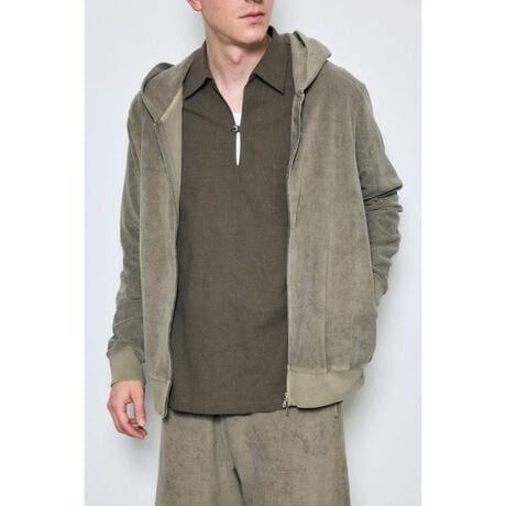 ■ソフトパイルジップアップフーディー■ポイント柔らかなソフトパイル素材を使用したジップアップフーディー。■ディテール細かいループのパイル素材にピグメント加工を施し、色落ち感のある風合いと柔らかさを両立。MOCHA、L/BLK、KHAの落ち着いたカラー展開で、ユーズド感のある雰囲気が魅力です。サイズは3サイズ展開で、幅広いニーズに対応可能。■スタイリングデニムやチノパンツと合わせた王道カジュアルスタイルに最適。インナーに薄手ニットやTシャツを重ね、ミリタリーやワークテイストの小物でまとめるのもおすすめです。ジャケットのインナーとしても使いやすく、ロングシーズン活躍。同素材のショートパンツ(251JSR81-3201 パイルショートパンツ)とのセットアップがおすすめ。■生地ループが細かく、柔らかい風合いのパイルにピグメント加工を施しています。硬くなりがちなピグメント加工ですが、パイルに施すことで絶妙な柔らかさがあるのが特徴です。透け感:なし裏 地:なし伸縮性:なし光沢感:なし※お取り扱い上のご注意色や風合いには個体差がありますが、製品加工の特性によるものです。濃色は摩擦などによる色落ち・色移りにご注意ください。[注意事項]※画像の商品はサンプルです。実際の商品と仕様、加工が若干異なる場合があります。※画像の商品は光の照射や角度、お使いのモニター環境により、実物と色味が異なる場合がございます。※着用、お取り扱いの際は、アテンションタグをご確認ください。