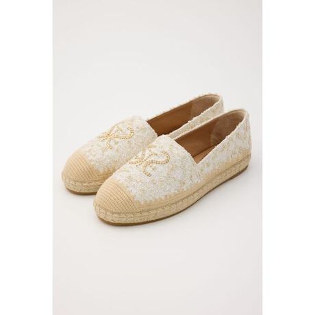 [型番:350JS149-9105]リゾートムード漂う、立体的なアンティーク感のあるロゴモチーフがアクセントをきかせたエスパドリーユ。上品なジャガード素材と涼し気なストロー風素材を使用し、さらに全体にはエスニック風のジグザク刺繍を施した、STACCATOらしい細部にまでこだわりの詰まった、バケーションにもデイリーにも履きやすい、オリジナリティ満載の1足です。