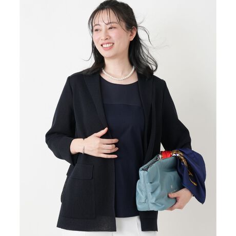 コットンとポリエステルをブレンドした、清涼感のある軽やかな風合いのノーボタンジャケット。カーディガン感覚でさらりと羽織れるボタンレスのデザインが、初夏のスタイリングにリラクシーな余裕を醸し出します。程よいハリ感のある編地が立体的なシルエットをキープし、ヒップにかかる絶妙な丈感が体型をスマートにカバー。オフィスカジュアルから休日のお出かけまで、幅広いスタイルを品よくクラスアップしてくれます。