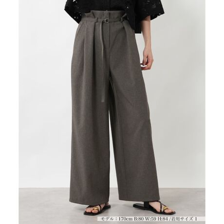 すとんと落ちるボリューム感のあるシルエットが、大人の余裕を感じさせるワイドパンツ。ハイウエスト部分にギャザーを寄せ、モダンな華やぎと立体的な美しさを構築しました。付属のベルトがウエストラインを際立たせ、リラクシーな穿き心地ながらも凛とした知的な佇まいを生み出します。背面のみをゴム仕様にすることで、腰まわりをすっきりと見せつつ、ストレスフリーに過ごせる快適性も兼ね備えています。