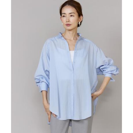 ■デザインコンパクトなシャツカラーとワイドなサイジングのロングシャツ。衿を立ててスタンド風にも着こなせるデザインで、ワイドなラグランスリーブによるストレスフリーな着心地とモード感を演出し、デザイン性のあるカッティングやサイドのデザインスリットをアクセントに、袖口はダブル釦仕様でサイズ調整が可能な、シンプルながら存在感のある一着です。■素材テンセルとナイロンを使用した薄手の平織素材。独特のパウダータッチと贅沢でなめらかな手触り、上品な光沢が魅力。ナチュラルで表情のあるシワ感が奥行きを生み、優れたドレープ性によって流れるような美しいシルエットを演出。手間と時間がかかるニドムワッシャー加工による高級感のある風合いもプラスされた素材です。・水洗い可同素材のブラウス品番:6962182812■サンプル撮影商品画像の商品はサンプルです。実際の商品とはサイズや色味、素材、デザイン等の仕様が若干変更になる場合がございます。■カラーについては、可能な限り実際の商品に近いカラーにて撮影をおこなっておりますが、照明の関係により実際の製品とは色味が違って見える場合があります。またパソコン・スマートフォンなどの環境により、若干製品と画像のカラーが異なる場合もございます。現物と画像のカラー差異については返品理由となりませんので、予めご了承ください。■サイズ表記はあくまで目安となります。