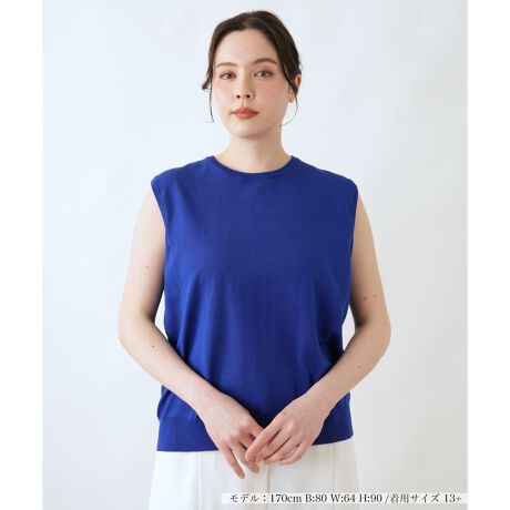 夏のレイヤードスタイルに欠かせない、ノースリーブのクルーネックセーター。ジャケットやカーディガンのインナーとしてお召しいただいても、もたつかずにすっきりと着こなせます。シンプルな無地のデザインは、合わせる羽織りやボトムスを選ばず、着回し力も抜群。ご自宅でお手入れしやすい素材も、汗ばむ季節には嬉しいポイントです。同素材のカーディガンとアンサンブルで着用すれば、より一層統一感のある上品な装いが完成します。