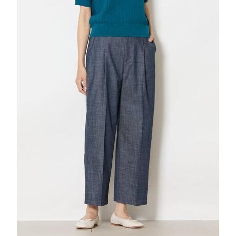 デニム調のシャンブレー素材を使用したストレートワイドパンツ。ナチュラルなスラブ感ときれいな目面を併せ持ち、カジュアルスタイルを格上げしてくれるアイテムです。色・柄を選ばず様々なトップスと相性が良く、きれいめカジュアルからリゾートスタイルまで、幅広い着こなしにマッチします。昨年好評だったネイビーをはじめ、都会的で洗練された印象のブラック、着こなしを春夏らしく明るくしてくれるベージュの3色展開。
