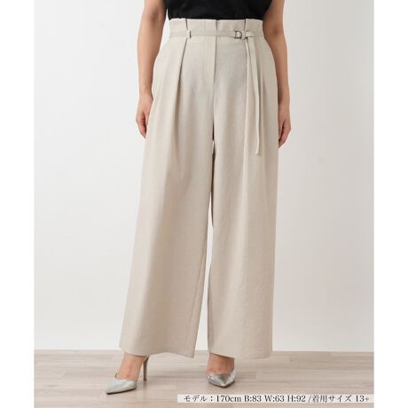 ゆったりとしたシルエットが、リラックス感とエレガンスを両立させるワイドパンツ。ウエストは一部ゴム仕様で、快適な穿き心地を実現しました。付属のベルトでウエストマークすれば、メリハリのある着こなしもお楽しみいただけます。歩くたびに優雅に揺れるドレープが、女性らしさを引き立てます。ご自宅で手軽にお手入れができるのも魅力の一つ。シンプルなトップスを合わせるだけで様になる、初夏のお出かけにぴったりの一本です。