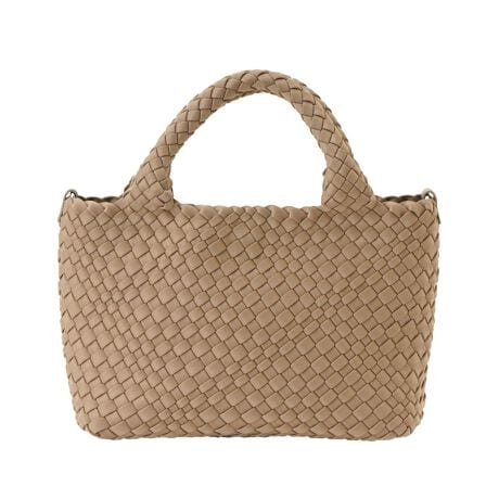 短冊状の素材を格子状に編み上げた、立体感のある豊かな表情が魅力です。光が当たることで生まれる細やかな陰影が、デザインに奥行きを与え、装いを上品に演出します。本体と一体感のあるふっくらとしたハンドルは、手に優しく馴染む持ち心地です。取り外し可能なストラップが付属しており、肩掛けや斜め掛けなど、その日の気分や服装に合わせた使い分けができます。
