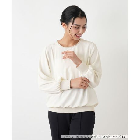 肌触りの良いジョーゼット素材をボディに使用し、襟、袖口、裾をニットで切り替えた、異素材コンビネーションが魅力のブラウス。ニット部分にはラメ糸を織り込み、さりげない華やかさをプラスしました。シンプルながらも細部にテクニックが光るデザインは、一枚で着ても様になり、ジャケットのインナーとしても重宝します。合わせるボトムスを選ばない汎用性の高さと、イージーケア性を兼ね備えた、大人の日常に寄り添う便利な一着です。