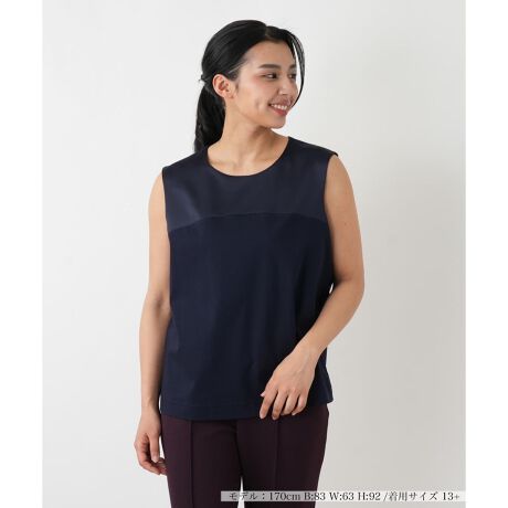 初夏の日差しに映える、滑らかな風合いのノースリーブカットソーをご用意いたしました。ジャケットやカーディガンのインナーとしてお召しいただいた際に、もたつくことなくすっきりとしたシルエットを保つ、計算されたデザインが魅力です。無駄のないシンプルな丸首のデザインは、合わせる羽織りものやアクセサリーを選ばず、着回し力も抜群。一枚あるとコーディネートの幅がぐっと広がる、大人の女性の必需品です。ご自宅でお手入れしやすい手軽さも、これからの季節に嬉しいポイントでございます。