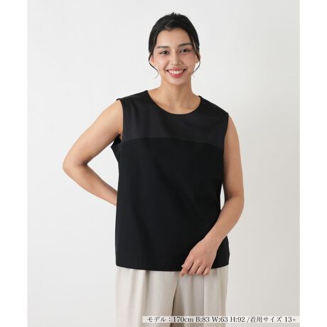 初夏の日差しに映える、滑らかな風合いのノースリーブカットソーをご用意いたしました。ジャケットやカーディガンのインナーとしてお召しいただいた際に、もたつくことなくすっきりとしたシルエットを保つ、計算されたデザインが魅力です。無駄のないシンプルな丸首のデザインは、合わせる羽織りものやアクセサリーを選ばず、着回し力も抜群。一枚あるとコーディネートの幅がぐっと広がる、大人の女性の必需品です。ご自宅でお手入れしやすい手軽さも、これからの季節に嬉しいポイントでございます。