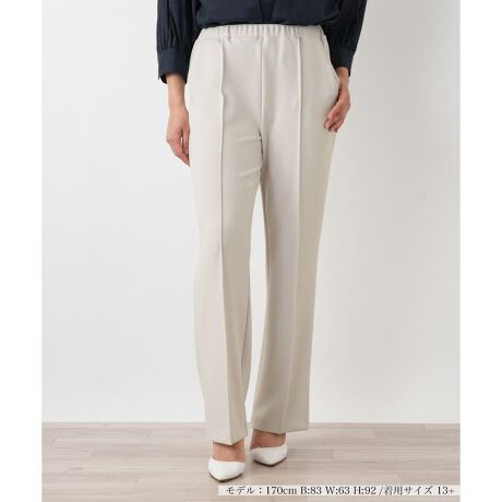 これからの季節に嬉しい、心地よい肌触りのパンツをご提案いたします。すっきりとしたシルエットでありながら、伸縮性のある素材とウエストゴム仕様で、長時間の着用でも疲れにくいのが魅力です。シンプルな無地のデザインは、合わせるトップスを選ばず、幅広いコーディネートにお役立ていただけます。ブラウスと合わせてきれいめに、カットソーと合わせてカジュアルにと、シーンに応じた着こなしをお楽しみください。ご自宅でお手入れしやすいイージーケア性も備え、デイリーに活躍する頼もしい一本です。