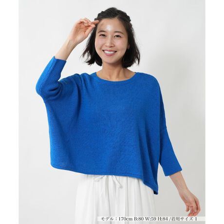 初夏の陽光に美しく映える、麻・コットン・ナイロンをブレンドしたドルマンニット。さらりとした清涼感のある肌触りと、ゆったりとしたワイドな身幅がリラクシーで都会的な抜け感を演出します。手首が覗くドルマンスリーブが全体を軽やかに見せ、動きに合わせて生まれる優雅なドレープが女性らしい柔らかなシルエットを形成。背面に配されたシルバーボタンがアクセントとなり、前後を逆にしても着用できる2WAY仕様で多彩なアレンジが楽しめます。