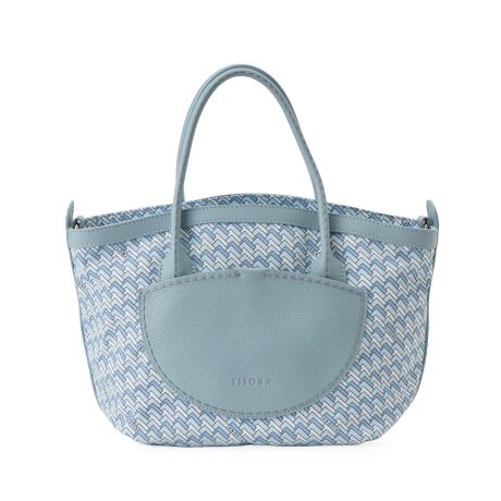 イタリアのファクトリーブランド「VISONA」より、コーディネートの主役となる美しいハンドバッグが届きました。リズミカルな幾何学模様の生地が、装いにモダンで軽快なアクセントを加えます。ハンドルやフロントの曲線的なポケットには、表面にシボのある柔らかな素材を組み合わせ、デザインに奥行きを与えています。本体上部の波形にカットされたカッティングが、さりげない遊び心を添え、全体の印象を柔らかく見せています。取り外しと長さの調節が可能なストラップが付属しており、手持ちはもちろん肩掛けでもお使いいただけます。