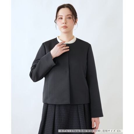 初夏の羽織りものとして重宝する、エレガントなノーカラージャケット。すっきりとしたクルーネックのデザインが、顔周りを明るく、品の良い印象に導きます。ワンピースに重ねればフォーマルな装いに、ブラウスやカットソーと合わせれば、オフィスカジュアルやお食事会にも最適なきれいめスタイルが完成します。長袖でありながらも、軽やかな素材感で、季節の変わり目に心地よくお召しいただけます。ご自宅でお手入れしやすい素材で仕立てており、いつでも清潔に保てるのが魅力です。
